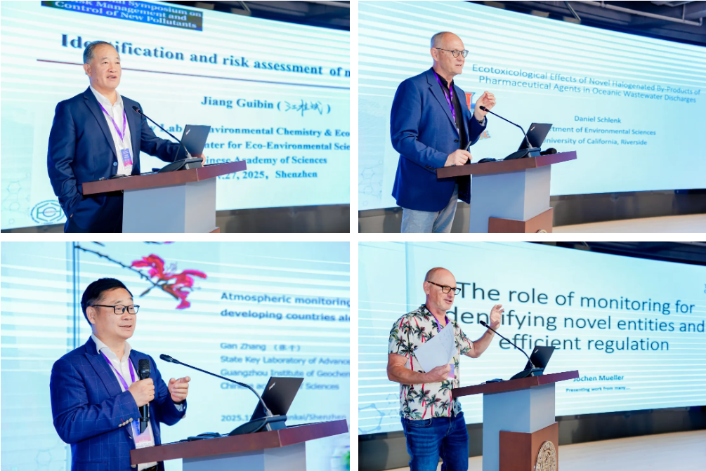 开幕式结束后,会议邀请了中国科学院生态环境研究中心江桂斌院士、加州大学河滨分校Daniel Schlenk教授、中国科学院广州地球化学研究所研究员张干、昆士兰大学Jochen Mueller教授分别做大会报告,分享最新研究成果。