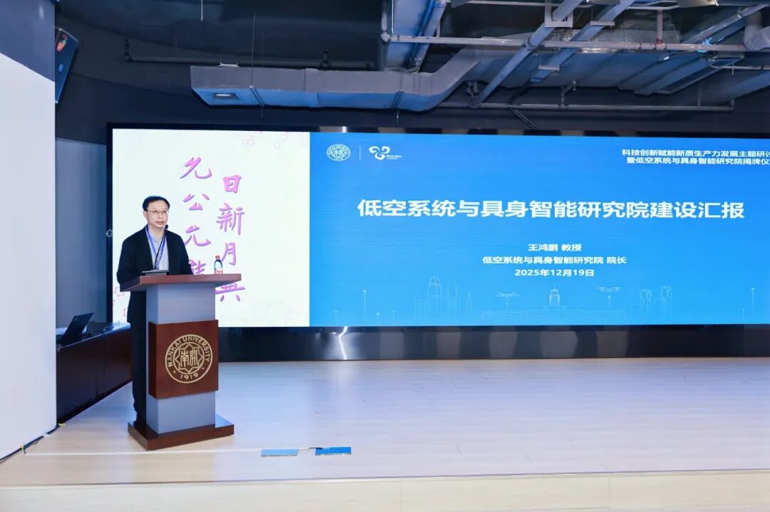王鸿鹏对低空系统与具身智能研究院的建设情况进行汇报。研究院未来将深度对接产业发展需求,以攻坚低空无人系统的具身智能技术、研发具身智能赋能的新型低空系统、拓展低空无人系统的多元应用领域、服务低空经济领域的现有相关企业为目标,构建低空系统与具身智能融合发展的技术体系,推动产业升级与生态构建。