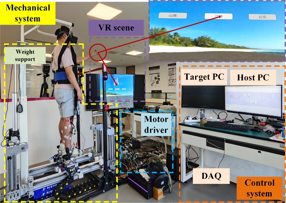 近年来,随着脑卒中、脊髓损伤及人口老龄化等因素影响的加剧,本体感觉与平衡功能障碍人群不断增加,面向运动功能障碍人群的下肢康复训练需求日益增长。如何构建安全、有效且能够激发患者主动参与的康复训练范式,已成为神经康复与康复机器人领域的重要研究方向。本体感觉缺陷会削弱机体对关节位置、运动状态及外界扰动的感知能力,进而影响姿势调节、步态稳定以及复杂环境下的运动适应能力。针对上述问题,研究团队在系统设计、人机交互控制、多场景扰动训练及安全保障方面开展了系统性研究。