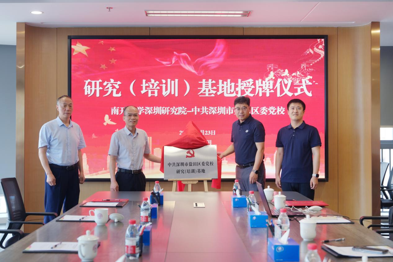 近日,南开大学深圳研究院与中共深圳市盐田区委党校合作签约暨“研究(培训)基地”授牌仪式在南开大学深圳研究院举行。双方围绕干部教育培训、课题研究与决策咨询、基地建设与品牌打造等领域签署战略合作协议,共同开启“党校+高校”合作新篇章。南开大学深圳研究院常务副院长陈万胜、副院长贾国君,中共深圳市盐田区委党校常务副校长魏剑松、副校长蔡丹华等双方领导出席活动。对话凝聚共识:共谋合作契合点仪式伊始,双方举行座谈交流。陈万胜介绍了南开大学深圳研究院近年来的发展成果。他指出,研究院在基础研究、成果转化、产业服务等方面取得积极进展,培训业务覆盖党政机关企事业单位、金融系统、教育系统等多个领域,并积极布局人工智能、生物医药、合成生物学等产业服务方向。他表示,研究院将依托南开大学在马克思主义理论、政府管理、哲学等学科的优势,全力支持盐田区干部教育培训和智库建设,助力区域经济社会高质量发展。魏剑松介绍了中共深圳市盐田区委党校的主要职能与发展方向。他强调,当前党校工作聚焦理论教育、党性教育和领导干部履职能力提升,尤其是在“4+4”产业体系(黄金珠宝、文旅、物流、海洋经济、数字经济等)相关培训中,亟需高校智力资源